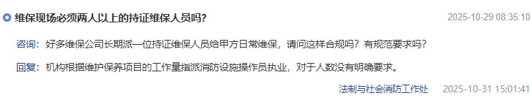 咨询:维保现场必须两人以上的持证维保人员吗?