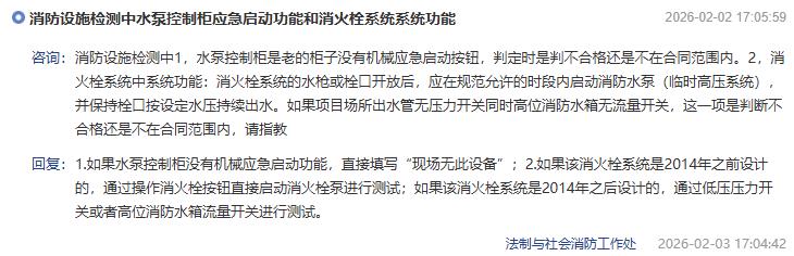 咨询:消防设施检测中水泵控制柜应急启动功能和消火栓系统系统功能