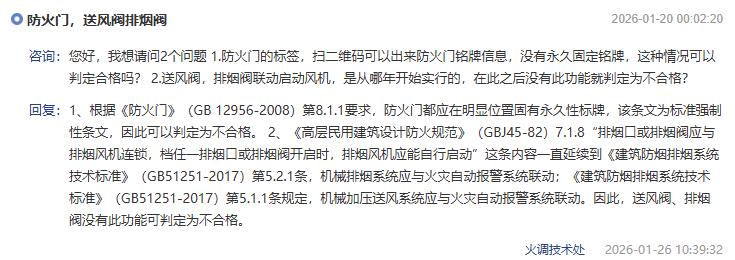 2、送风阀,排烟阀联动启动风机,是从哪年开始实行的,在此之后没有此功能就判定为不合格?