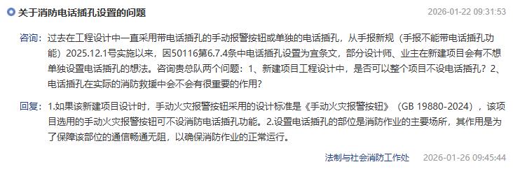 过去在工程设计中一直采用带电话插孔的手动报警按钮或单独的电话插孔,从手报新规(手报不能带电话插孔功能)2025.12.1号实施以来,因50116第6.7.4条中电话插孔设置为宜条文,部分设计师、业主在新建项目会有不想单独设置电话插孔的想法。