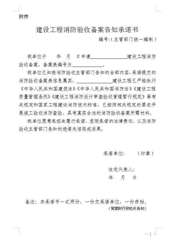 附件 建设工程消防验收备案告知承诺书 部分截图