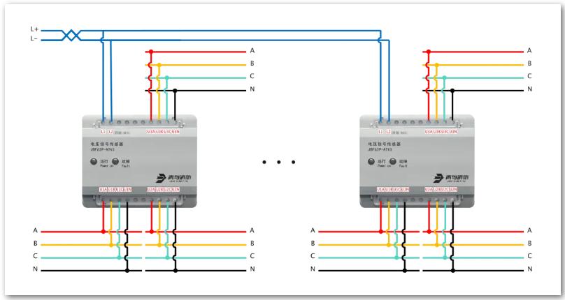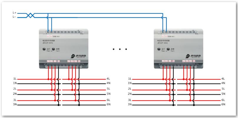 4、JBF62P-ATV2电压信号传感器(三相四线)接线图: