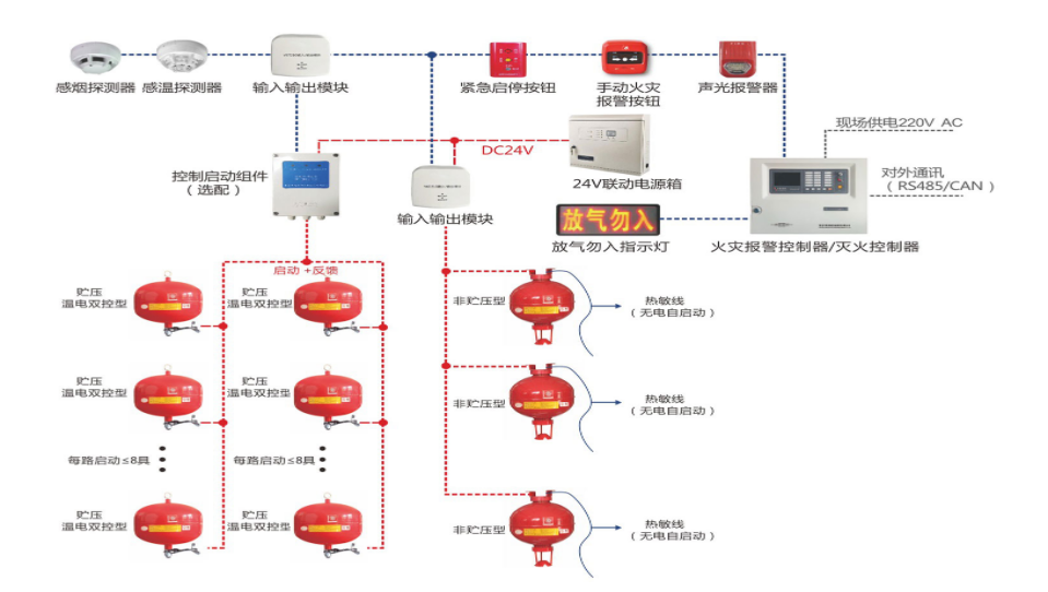 图·悬挂式超细干粉灭火装置系统示意图