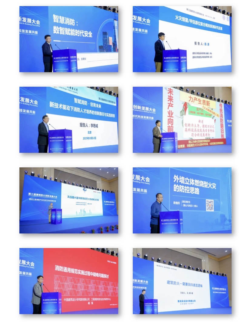 大会同期邀请陈秉安、陈涛、李思成、赵克伟、方桂芳、许传升、阚强、石峥嵘、虞昊、贺海军、Henrieta Colo、李苗、赵利宏、白晓军等行业领域知名专家学者围绕智慧消防、火灾防控、火灾探测、火灾实体实验、消防系统、消防技术标准、既有建筑改造、消防人才培养等专业技术领域分享宝贵经验,通过拆解典型应用案例明晰技术落地路径,进一步碰撞思想、凝聚共识,针对性提出兼具创新性与实操性的解决方案,为推动建筑防火领域技术升级与管理优化提供了有力支撑。