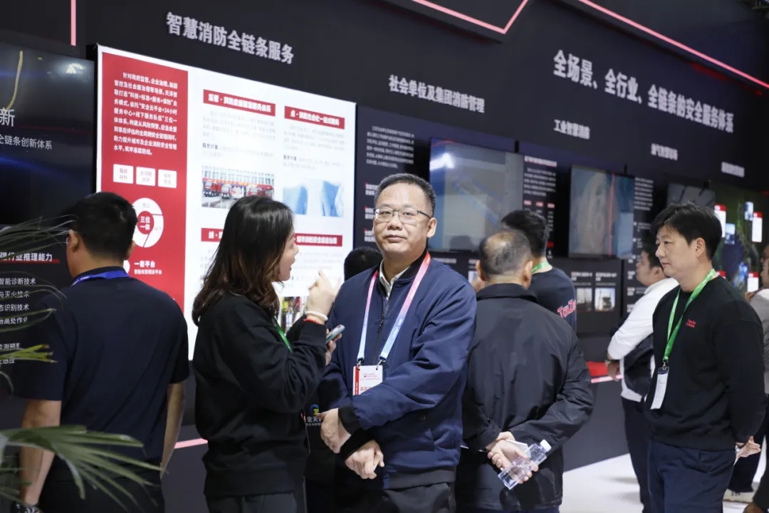 天泽不仅系统展示了覆盖智慧消防全行业的解决方案与全链条服务能力,还重点呈现了在工业、油气站场、新能源、基层治理等关键领域的创新技术、服务逻辑与落地成果。在此基础上,公司更将能力外延,实现了消防安全与安全生产的深度融合,为各类高风险场景构建起从风险预警、智能诊断到精准应急、高效运维的全流程闭环管理能力。