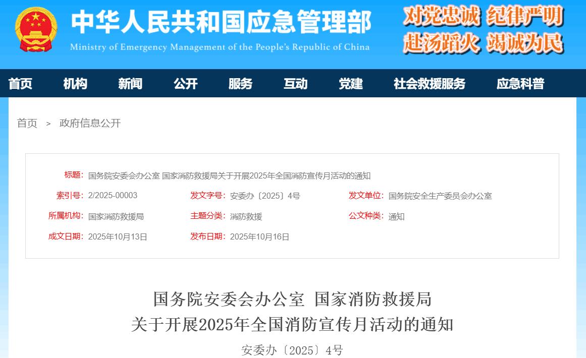 国务院安委会办公室 国家消防救援局关于开展2025年全国消防宣传月活动的通知