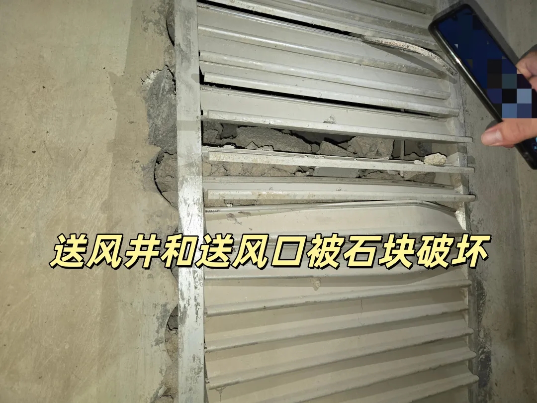 ⑩地下一层楼梯间内送风井和送风口被石块破坏,不符合《建筑防烟排烟系统技术标准》GB51251-2017第3.3.7条之规定,属于消防设施未保持完好有效,违反了《中华人民共和国消防法》第十六条第一款第(二)项之规定;