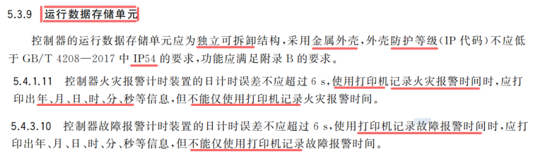 且GB 50166中也并未要求打印机是控制器必备的(4.3.2条中没有“打印”功能),附录E对于检测、验收记录的规定是对“具有打印功能”的控制器。只是基本上控制器都配置了打印机,行业已经习惯了而已,看到没有打印机就会觉得缺东西了。至于必须打印哪些信息,按照GB 4717规定为火警、故障信息,GB 16806联动控制器标准中规定为联动(启动、反馈)信息。