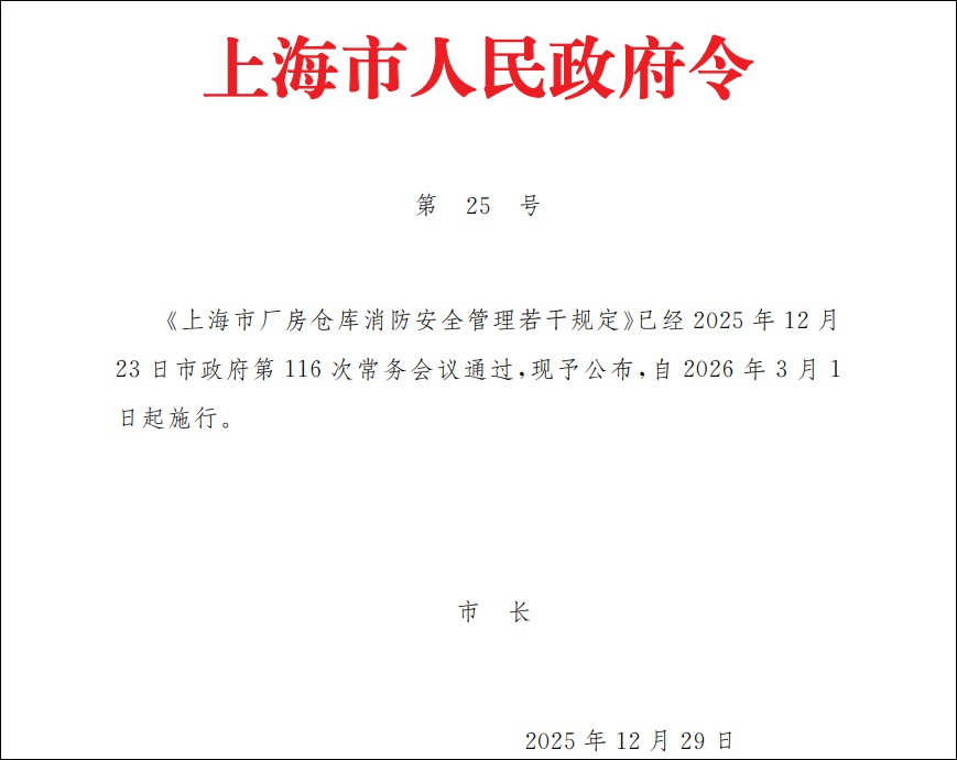 本规定自2026年3月1日起施行。1989年8月23日上海市人民政府批准,根据2010年12月20日上海市人民政府令第52号修正并重新发布的《上海市仓库防火管理规定》同时废止。