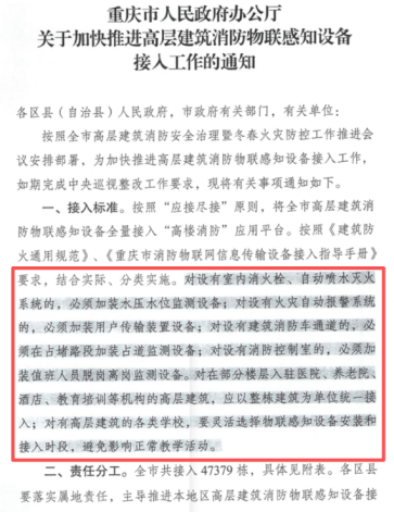 近日,重庆市人民政府办公厅印发《关于加快推进高层建筑消防物联感知设备接入工作的通知》,明确提出到2027年6月底前,实现全市4.7万余栋高层建筑消防物联感知设备的全面介接入。该目标覆盖100米以上超高层建筑及预人员密集等高风险场所,释放出一个清晰信号:高层建筑消防监管正在从“人工巡查”向“数字化、全天候感知”加速转型。