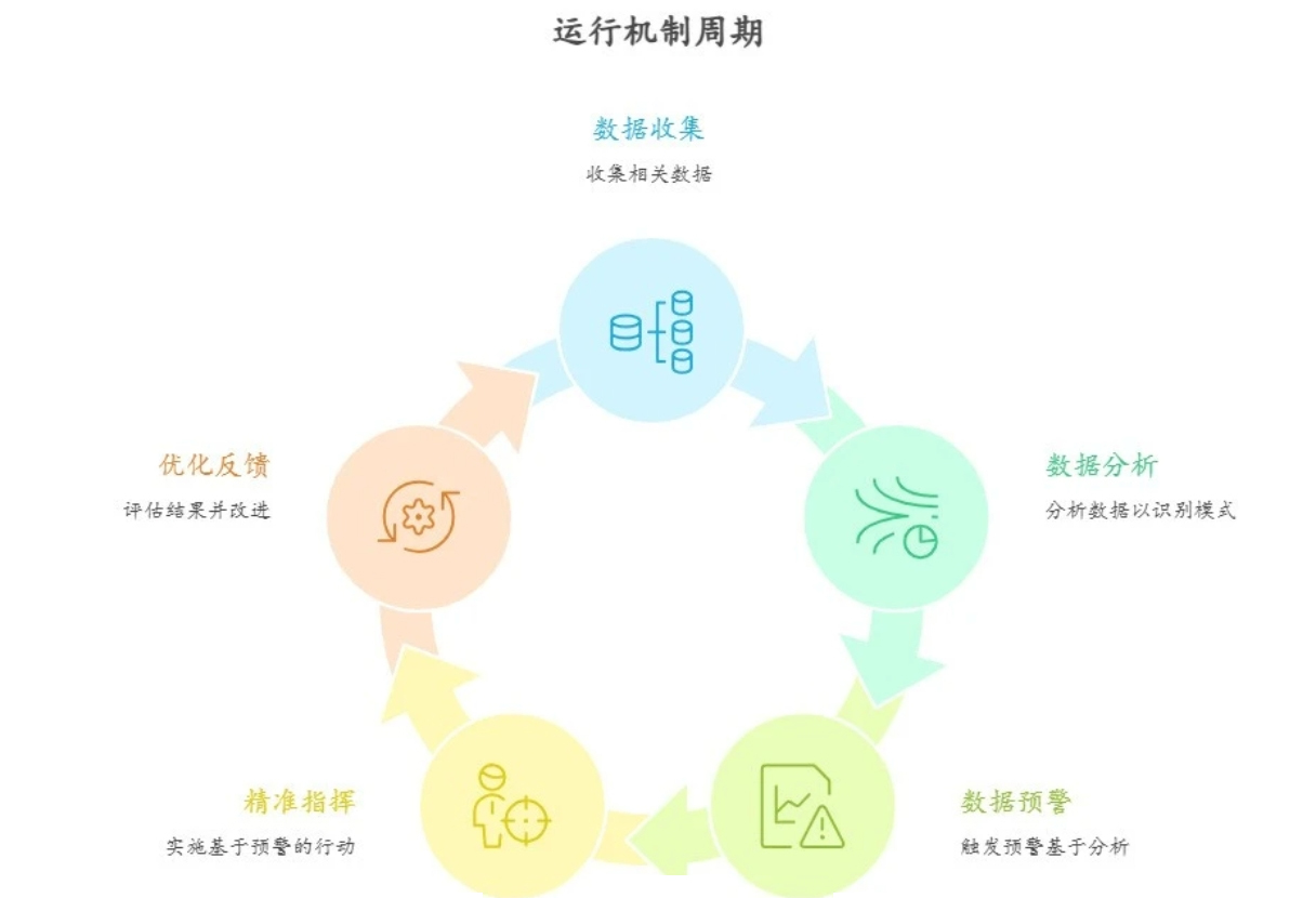 数据驱动:数据收集→数据分析→数据预警→精准指挥→优化反馈的动态化过程