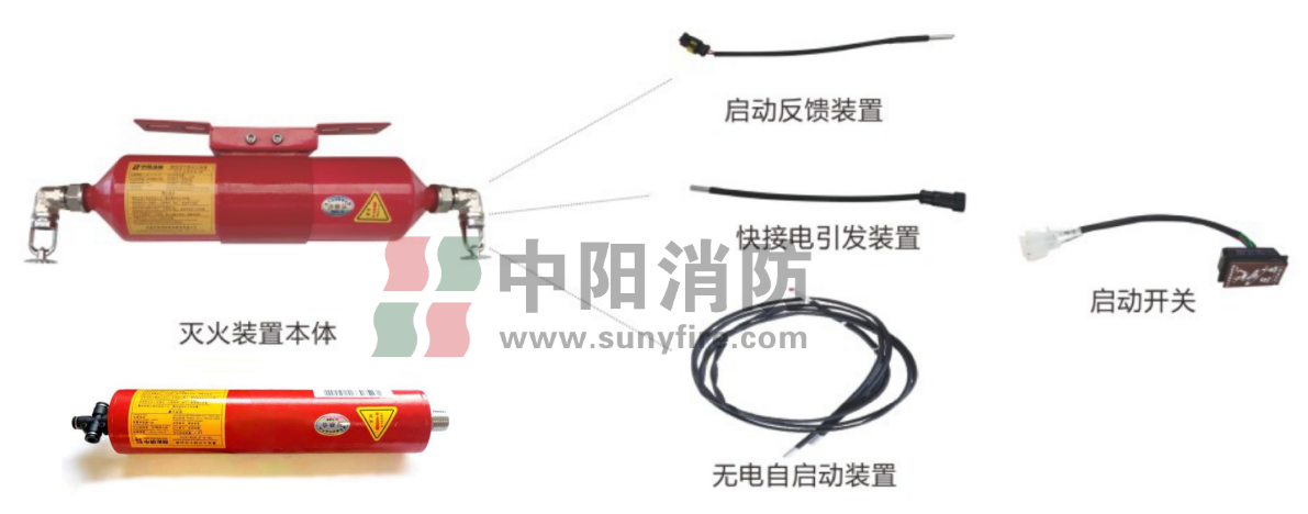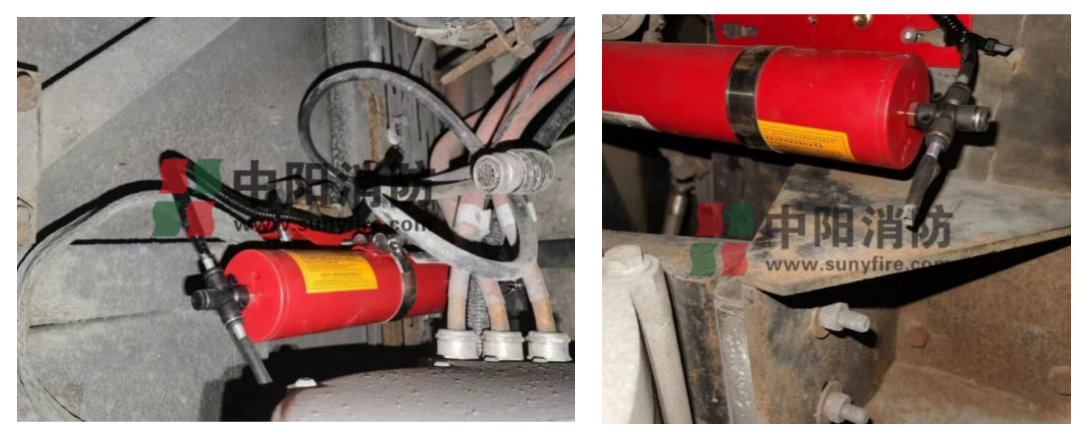 2. 原车 4 套灭火装置,替换为中阳消防FFX-ACD0.4-SF 型灭火装置,同样保持与原车支架、线束插件的完全兼容,安装对接无阻碍。