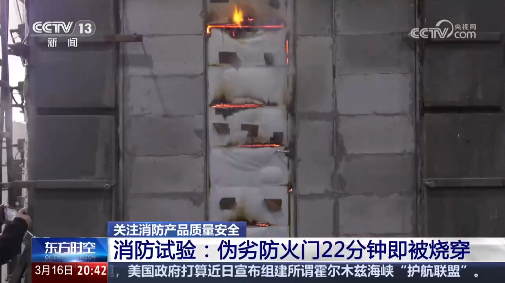消防试验:伪劣防火门22分钟即被烧穿