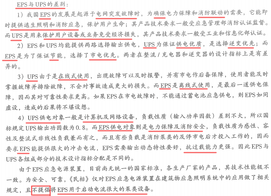 注:关于不间断电源UPS、应急电源 EPS的定义以及配置,可参考GB 51348-2019《民用建筑电气设计标准》。UPS与EPS的差别可参考王金元老师主编的《<民用建筑电气设计标准>实施指南》。