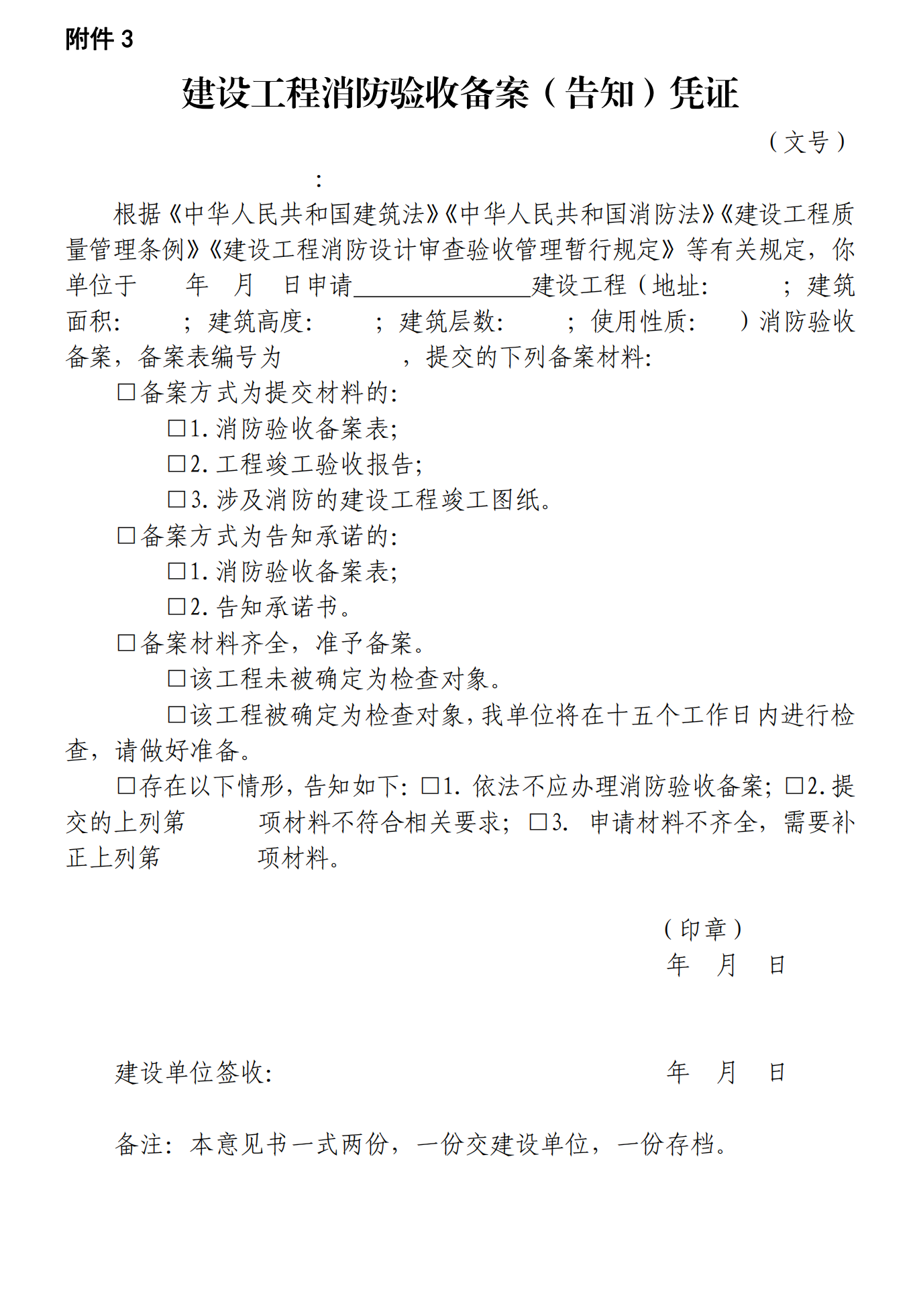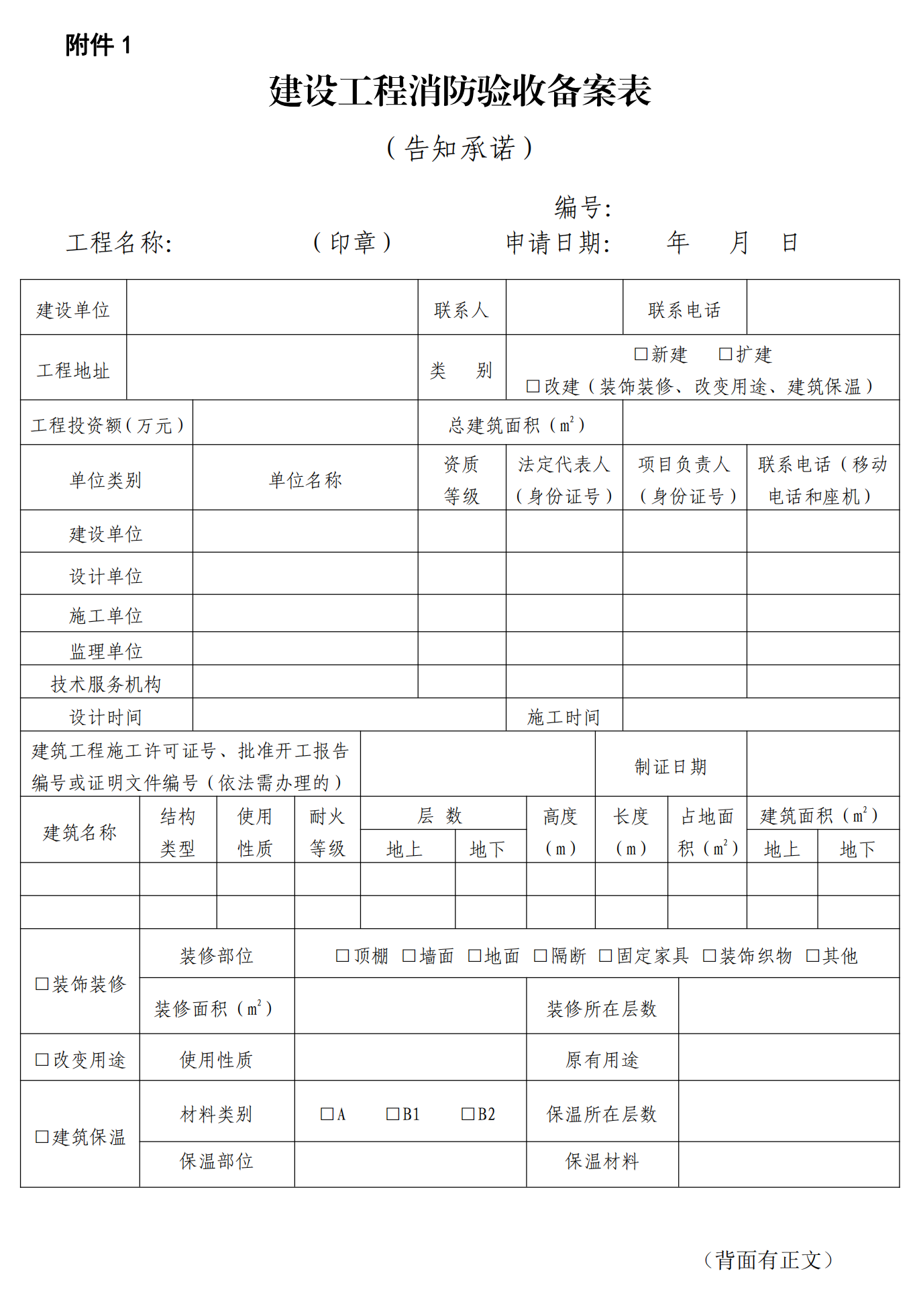 (一)建设工程消防验收备案表(告知承诺);