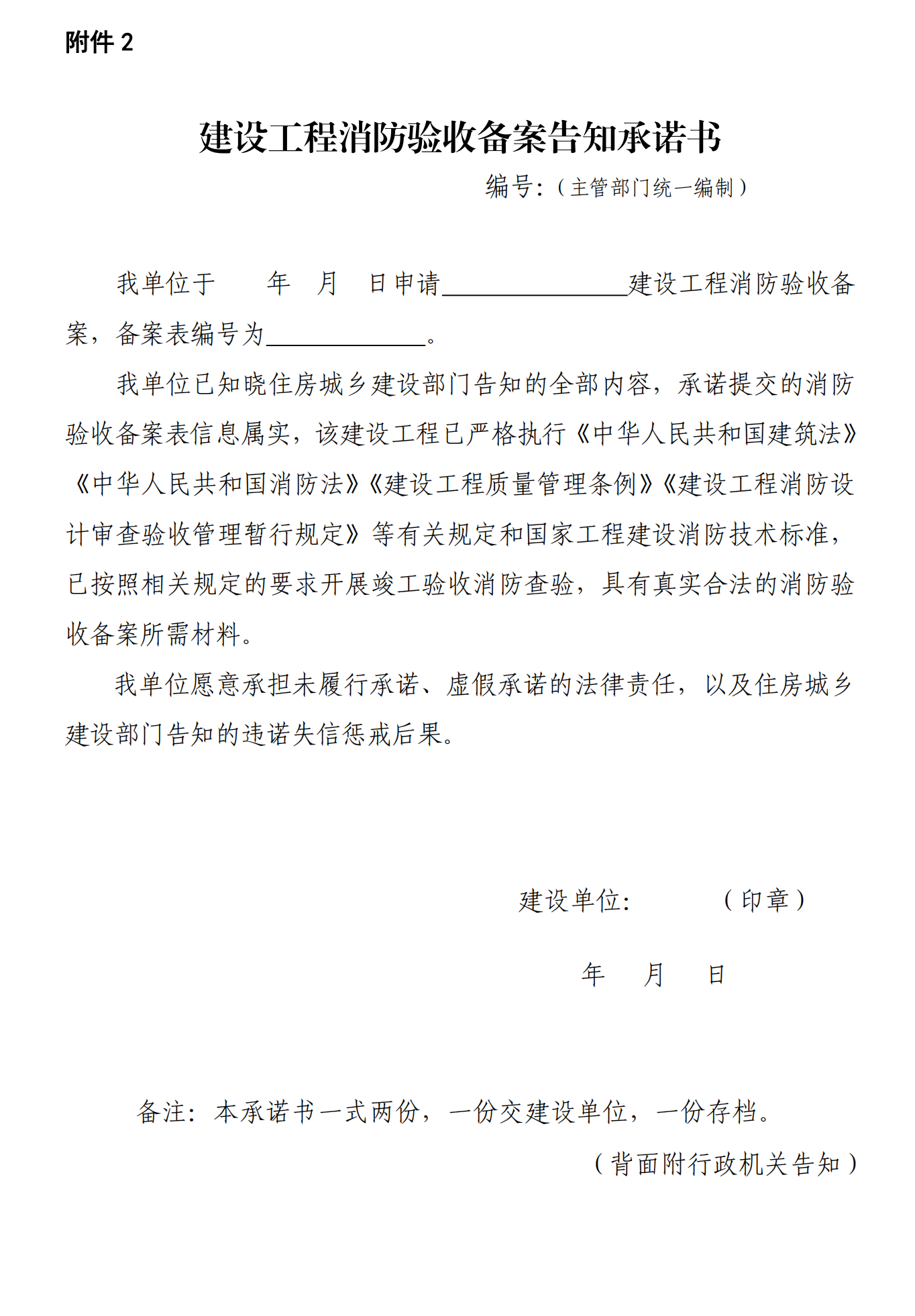 (二)建设工程消防验收备案告知承诺书。