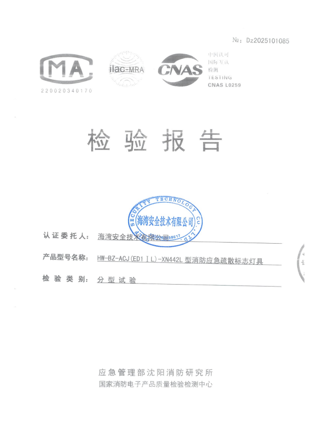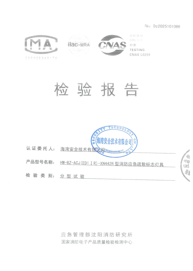 HW-BZ-ACJ(ES1I)-XN441A集中电源集中控制型消防应急疏散标志灯具(单面安全出口 小型壁挂)检验报告-海湾 .pdf
