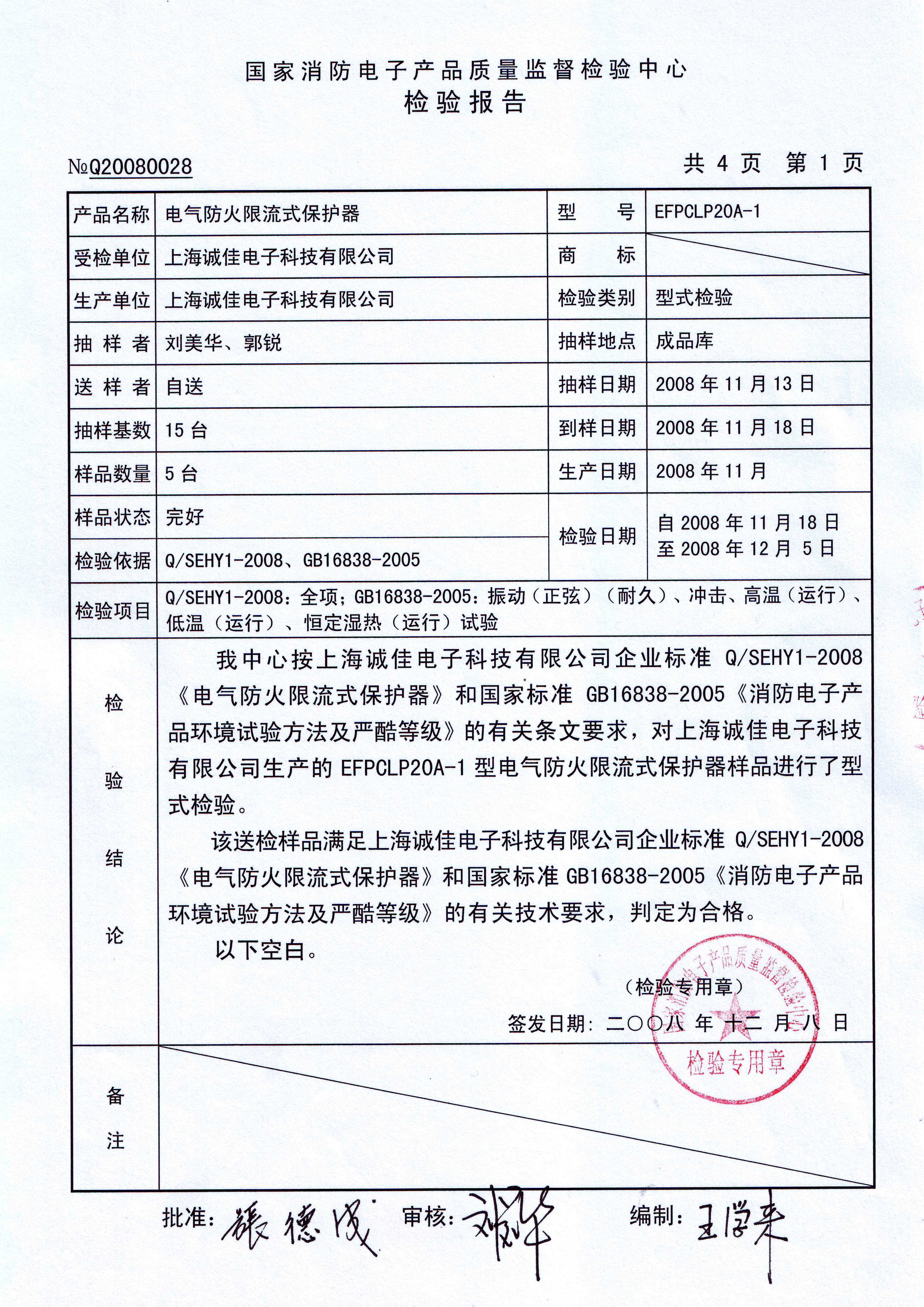 EFPCLP20A-1电气防火限流式保护器检验报告-诚佳电子